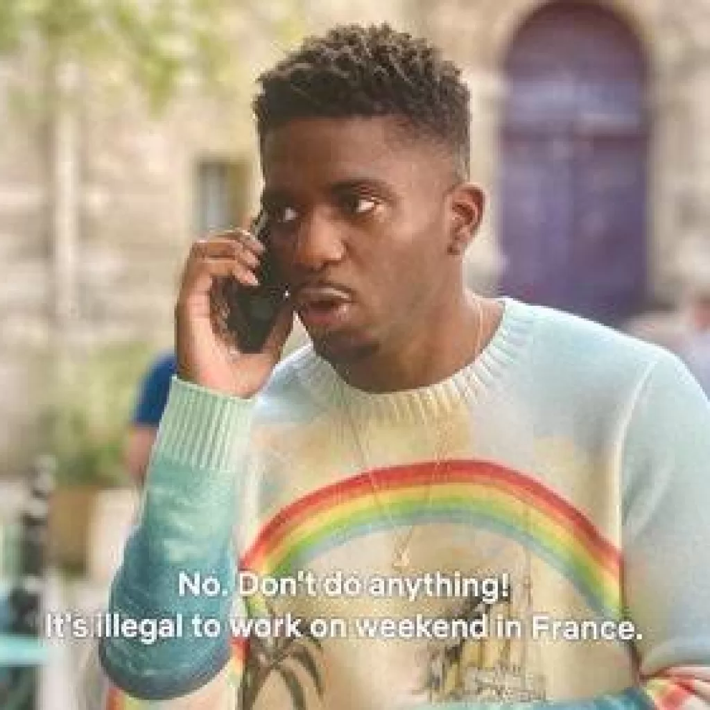 One thing we love about Emily In Paris is it exemplifies something that many foreigners don’t realise until they are living in Paris. The French know their working rights to a tee, and are known for striking if boundaries are even the slightest bit overstepped. They don’t shirk lunch to eat at their desks, they aren’t chained to the office and they absolutely do not work on weekends. “It’s illegal”, as Julien explains to Emily when she calls him about work on a weekend. When Madeline comes to town, many at Savoir are offended by her arriving to the office early, eating at her desk and in meetings or expecting them to alter their lifestyles.